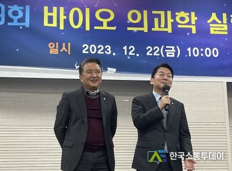 한국소통투데이 관리자 기자 | 12월 22일 청주SB플라자 대회의실에서 개최된 제19회 바이오 의과학 실험경연대회 시상식에서 김영환 충북도지사와 안철수 의원이 조우했다.
