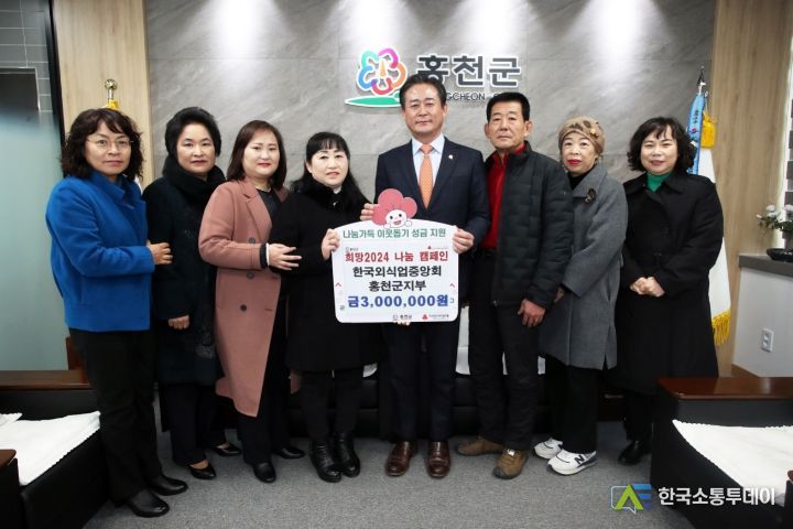 한국소통투데이 관리자 기자 | 한국외식업중앙회 홍천군지부(지부장 박선희)는 12월 26일 홍천군청을 방문하여 희망2024 나눔캠페인에 성금 300만원을 기탁했다.
