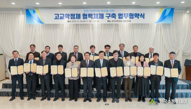 한국소통투데이 관리자 기자 | 강원특별자치도교육청은 26일 춘천세종호텔에서 ‘강원 미래인재 육성을 위한 고교학점제 협력체제 구축 업무협약’을 도내 모든 대학(20개 대학-캠퍼스 및 기관 포함)과 체결했다.