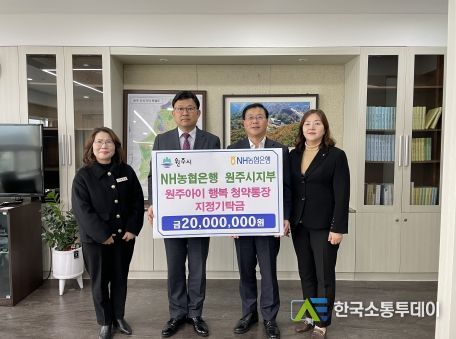 한국소통투데이 관리자 기자 | NH농협은행 원주시지부는 26일 원주시청 부시장 집무실에서 ‘원주아이 행복 청약통장 지원사업’ 지정기탁금 2,000만 원을 전달했다.