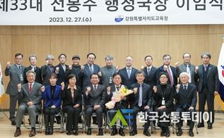 한국소통투데이 관리자 기자 | 강원특별자치도교육청은 27일 오후 4시, 2층 대회의실에서 직원들이 참석한 가운데 전봉주 행정국장 이임식을 진행했다.