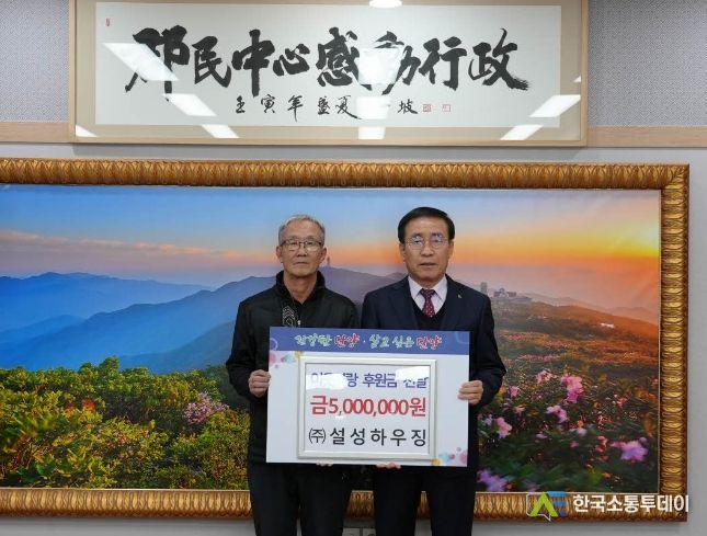 한국소통투데이 관리자 기자 | ㈜설성하우징은 지난 27일 단양군 관내 취약계층을 위해 써달라며 충북사회복지공동모금회를 통해 500만 원을 전달했다.