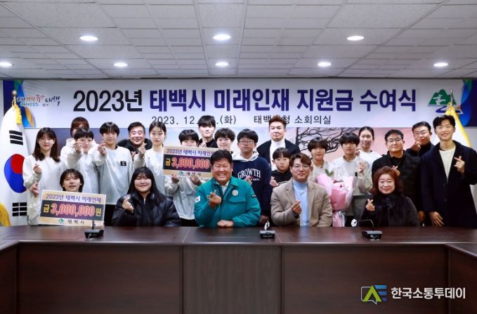 2023년 태백시 미래인재는 지난 13일 미래인재육성위원회 심의를 통해 개인 9명, 단체 1팀을 선발했고, 이번 수여식을 통해 각 3백만 원의 지원금을 전달했다.