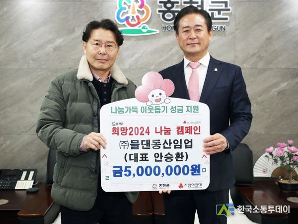 한국소통투데이 관리자 기자 | ㈜물댄동산임업은 12월 28일 홍천군청을 방문하여 희망2024 나눔캠페인에 성금 500만원을 기탁했다.