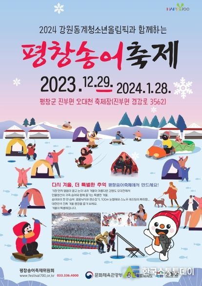 올해 15회째를 맞이하는 평창송어축제는 문체부지정 2024-2025 대한민국 대표 겨울축제로, 12월 29일부터 내년 1월 28일까지 한달간 오대천 축제장에서 열리게 된다.