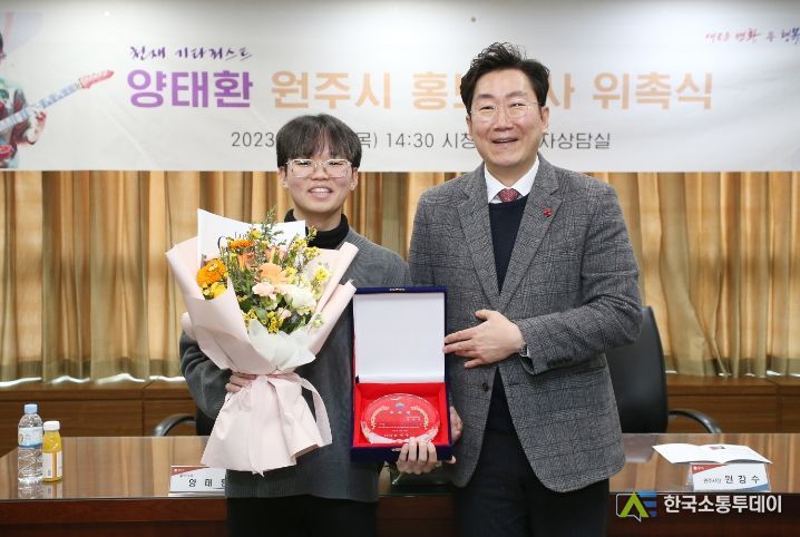한국소통투데이 관리자 기자 | 원주시는 28일 시청 투자상담실에서 천재 기타리스트 양태환 씨를 원주시 홍보대사로 위촉했다.