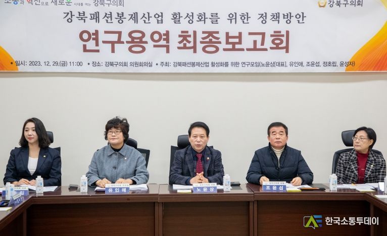 한국소통투데이 관리자 기자 | 강북구의회 의원연구단체인'강북패션봉제산업 활성화를 위한 연구모임'은 지난 12월 29일 의회 3층 의원회의실에서 ‘강북패션봉제산업 활성화를 위한 정책방안 연구용역’ 최종보고회를 개최했다.
