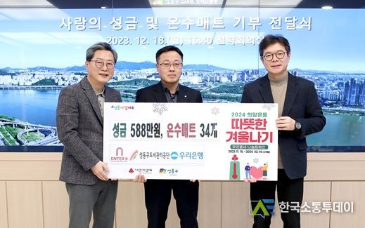 한국소통투데이 관리자 기자 | 서울 성동구는 지난달 18일 성동구도시관리공단 및 협력기관(우리은행 서울시설공단지점, 엔터식스)과 함께 ‘사랑의 성금 및 온수매트’ 전달식을 가졌다.