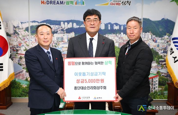 한국소통투데이 관리자 기자 | 종단 대순진리회 성주회는 삼척시의 취약계층을 위하여 지난 12월 29일 삼척시를 방문하여 후원금 5천만 원을 기탁했다. 종단 대순진리회 성주회는 2020년부터 2021년, 2022년에도 후원금 5천만 원을 기탁했었다.
