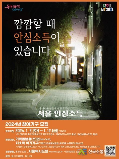 정상훈 서울시 복지정책실장은 “2024년에는 보다 촘촘한 사회안전망 마련을 위해 기존 복지제도에서 소외된 가족돌봄청소년 및 청년과 저소득 위기가구를 대상으로 집중 발굴하여 지원할 예정”이라며, “이들이 안심소득을 통해 생계부담에서 벗어나 미래를 준비하는 희망에 찬 새해가 될 수 있을 것으로 기대한다. 이번 안심소득 시범사업에 시민 여러분께서 많은 관심을 갖고 참여해 주시기 바란다” 고 밝혔다.