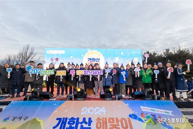 한국소통투데이 관리자 기자 | 서울시 강서구의회 최동철 의장과 강서구의회 의원들은 갑진년 새해 첫날인 1월 1일 오전 7시 개화산 해맞이공원 정상에서 개최된 ‘2024년 개화산 해맞이’ 행사에 참석했다.