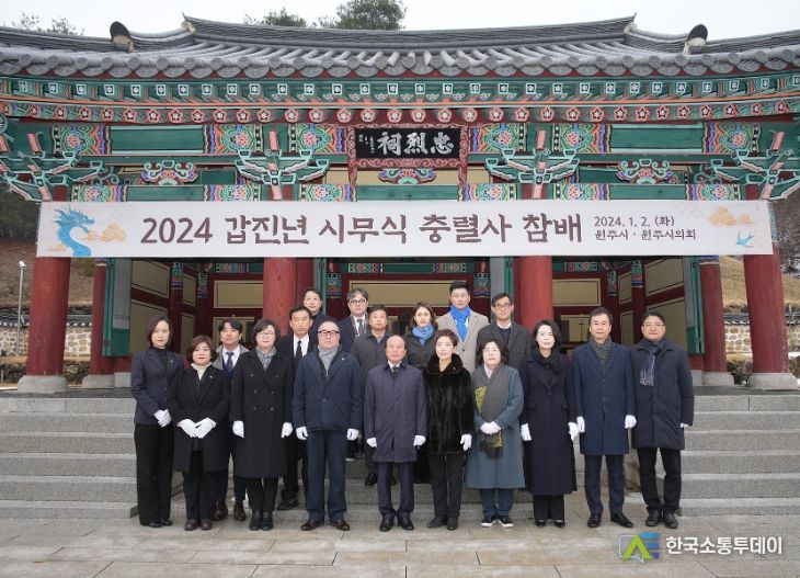 한국소통투데이 관리자 기자 | 원주시의회는 2024년 새해를 맞아 1월 2일 시무식 행사를 개최하고, 새해의 시작을 알렸다. 시무식에 앞서, 원주시의회 의원들은 행구동 충렬사와 태장동 현충탑을 찾아 순국선열과 애국지사들에 대한 경의를 표하며, 그들의 헌신을 기렸다.