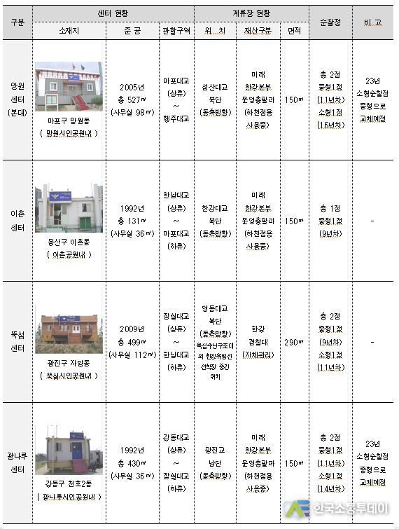 신축하는 센터 4곳은 2025년 여의도 본대를 시작으로 2028년까지 순차적으로 진행하며, 한강 침수에 대비해 비침수식 공법을 적용하고 주변 경관과 어울리는 외관 디자인으로 한강 내 치안 거점으로 조성된다.