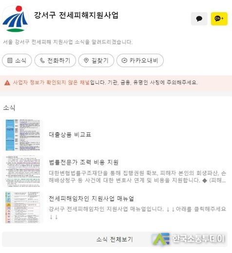 구는 피해자들에게 채널가입 안내 문자를 전송했으며, 카카오톡 앱에서 ‘강서구 전세피해지원사업’을 검색해 직접 가입할 수도 있다.