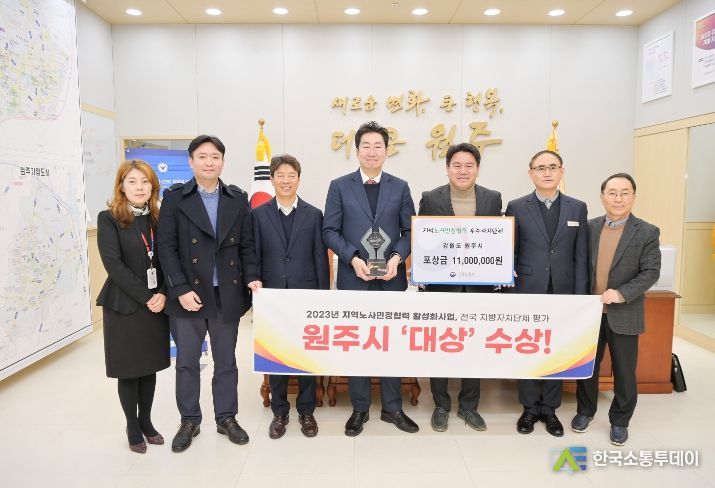 한국소통투데이 관리자 기자 | 원주시가 고용노동부 주관으로 전국 지방자치단체를 대상으로 하는 '2023년 지역 노사민정 협력 활성화 사업'지자체 평가에서 우수 지자체로 선정되어 최고부문인‘대상’을 수상하는 영예를 안았다.