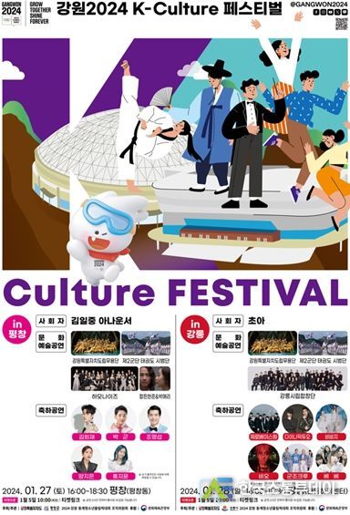 한국소통투데이 관리자 기자 | 강원특별자치도는 오는 1월 27일과 1월 28일 평창과 강릉에서 '강원2024 K-culture 페스티벌'을 개최하여 올림픽 관람 열기를 더하고, 대회의 성공개최를 이끈다.