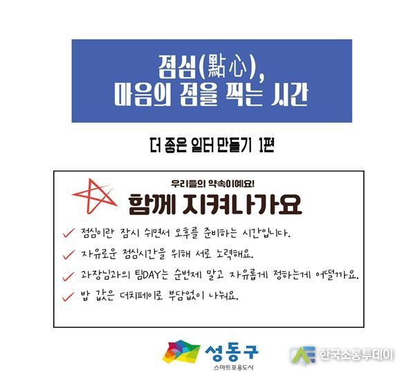 공직사회의 불합리한 관행 타파에도 다각도의 노력을 기울였다. 시보 해제 시 떡 돌리기, 간부직과의 점심 식사 순번제, 강제 회식 동원 등 불필요하고 권위적인 공직 문화를 개선하기 위한 캠페인을 실시하고, 갑질 피해 신고센터를 강화하는 등 ‘갑질 없는 성동 만들기’ 사업을 추진했다.
