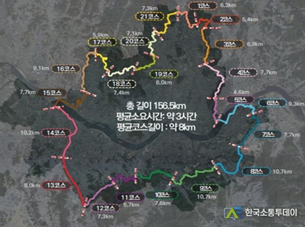 8개 코스를 21개 코스로 변경하게 되면 전체 코스의 평균 길이는 8km 정도로, 당초 8시간 정도 잡아야 했던 완주시간을 평균 3시간으로 단축해 앞으로 더 많은 시민이 부담 없이 도전할 수 있게 될 것으로 기대된다.