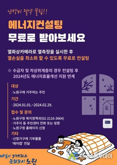 한국소통투데이 관리자 기자 | 서울 노원구가 주택 내 열손실 원인을 찾아 진단하고 간단한 단열 조치까지 지원해 주는 '2024년 우리집 에너지컨설팅'사업을 실시하고 있다고 밝혔다.