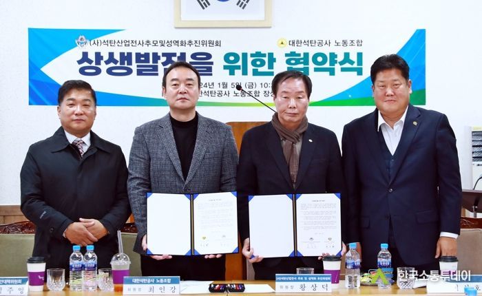 한국소통투데이 관리자 기자 | 이상호 태백시장은 지난 5일 대한석탄공사 노동조합 장성지부 회의실에서 열린 태백석탄공사 노동조합과 (사)석탄산업전사추모 및 성역화추진위원회의 상생발전을 위한 협약식에 참석했다.