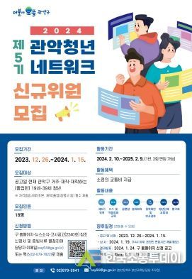 한편, 구는 ‘관악청년네트워크’ 신규 위원을 오는 1월 15일까지 모집한다.