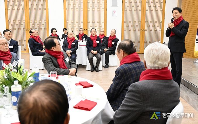 한국소통투데이 관리자 기자 | 오세훈 서울시장은 5일 18시 50분, 서울파트너스하우스 컨벤션홀(지하 1층)에서 열린 ‘대한노인회 서울시연합회 신년간담회’에 참석해 어르신들의 의견을 청취하는 시간을 가졌다.