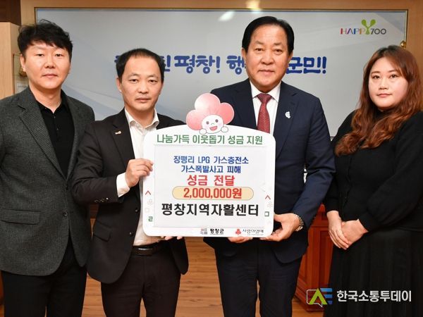 한국소통투데이 관리자 기자 | 평창지역자활센터는 1월 8일 군청을 방문해 용평면 장평리 LPG 충전소 가스폭발사고 피해 이웃들에게 전달해 달라며 200만 원을 기탁했다.