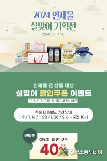 한국소통투데이 관리자 기자 | 인제군이 2024년 설 명절을 맞이해 오는 2월 12일까지‘인제몰 설맞이 기획전’을 진행한다.