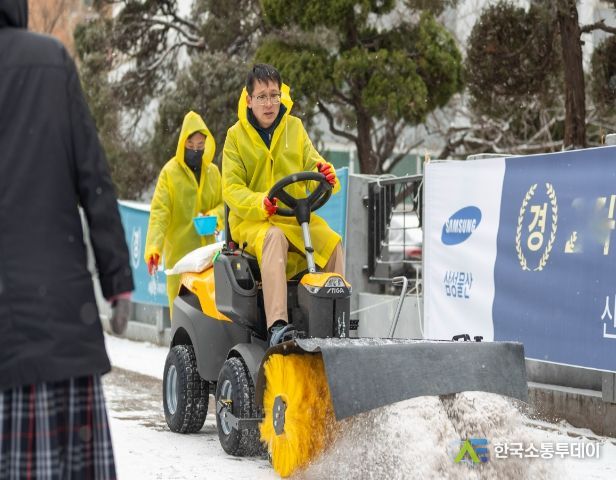 특히 구는 새로운 제설기계 장비인 제설브러시를 도입해 제설작업을 진행했다. 직원들이 빗자루로 눈을 치우는 ‘인력 제설’ 대신에 ‘자동 제설기계’로 제설에 나선 것이다. 전동기 앞에 대형 브러시가 달린 ‘제설브러시’로 보도에 쌓인 눈을 빠르게 치워 나갔다. 그 결과 영하의 날씨에도 불구하고 도로 결빙을 방지할 수 있었다.