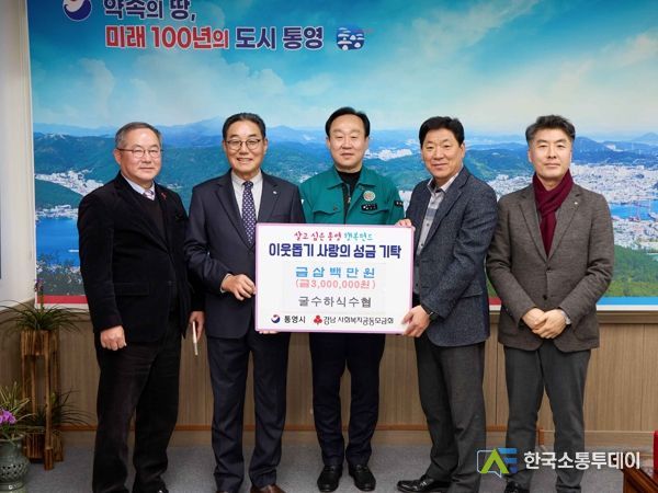 한국소통투데이 관리자 기자 | 통영시는 지난 9일 굴수하식수산업협동조합에서 2024년 청룡의 해를 맞아 생활이 어려운 저소득층에게 전달해 달라며 이웃돕기 성금 300만원을 기탁했다고 밝혔다.