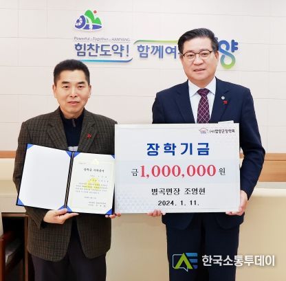 한국소통투데이 관리자 기자 | 함양군 조영현 병곡면장이 11일 지역 내 후배 양성을 위해 사용해 달라며 장학금 100만 원을 (사)함양군장학회에 기탁했다.
