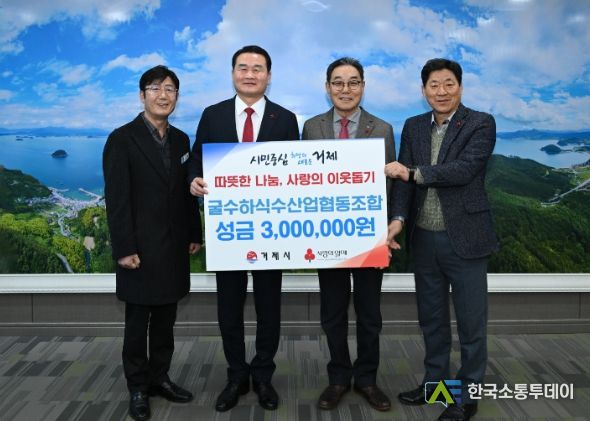 한국소통투데이 관리자 기자 | 통영 굴수하식양식 수산업협동조합 는 지난 11일 거제시청을 방문하여 저소득 가정 지원을 위해 써 달라며 성금 300만원을 전달했다.