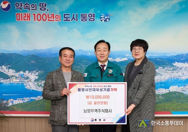 한국소통투데이 관리자 기자 | 지난 11일 김용우 통영관광개발공사 사장은 지역 인재육성을 위해 써달라며 인재육성기금 250만 원을 기탁했으며, 남양무역주식회사(대표 윤기중)는 1000만원의 기금을, ㈜우주전기(대표 장희옥,김명용)에서도 300만원의 기금을 기탁했다.