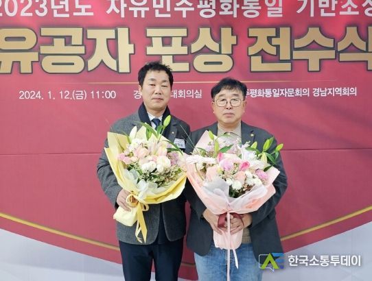 한국소통투데이 관리자 기자 | 민주평화통일자문회의 함양군협의회는 12일 경남도청 대회의실에서 박완수 도지사, 자문위원 , 축하객 등 250여명이 참석한 가운데 열린 ‘2023 자유민주평화통일 기반조성 유공자 포상 전수식’에서 허태욱 자문위원이 민주평통 의장(대통령)상을, 박정섭 자문위원이 경남도지사 표창을 받는 영광을 차지했다고 밝혔다.