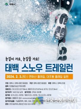 한국소통투데이 관리자 기자 | 태백시는 오는 2월 3일 태백 스노우 트레일런 대회(주관 태백시 철인3종 협회)를 연화산과 대조봉 일대에서 개최한다고 밝혔다.