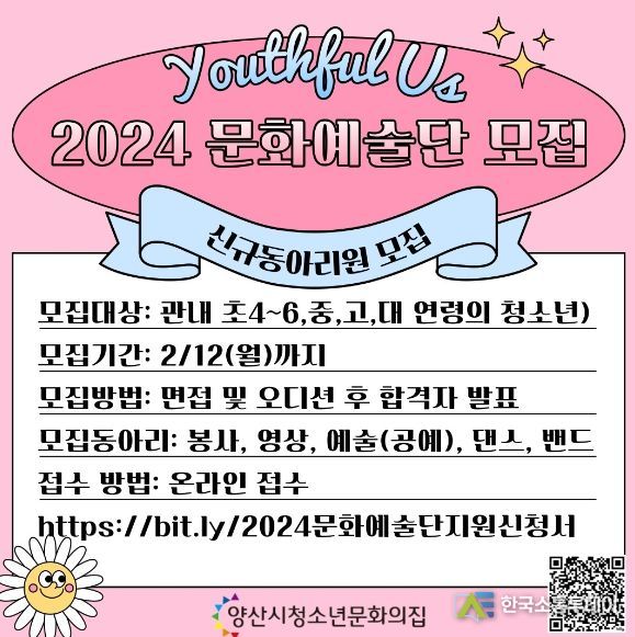 문화예술단 모집에 대한 자세한 사항은 양산시청소년문화의집 또는 양산시청소년광장 홈페이지공지사항에서 확인할 수 있다.