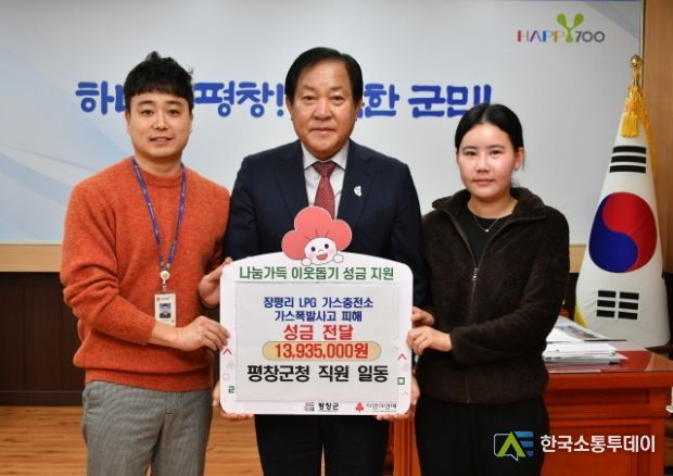 한국소통투데이 관리자 기자 | 평창군 공직자 직원 일동은 지난 1월 1일 용평면 장평리 일원에서 발생한 LPG 가스충전소 가스폭발 사고 피해 극복을 위한 성금 13,935,000원을 사회복지공동모금회에 지정 기탁했다.