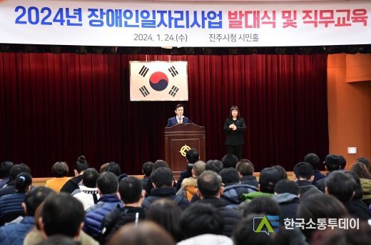 한국소통투데이 관리자 기자 | 진주시는 24일 시청 시민홀에서 장애인들의 사회참여 기회 확대를 위해 ‘2024년 장애인일자리사업 발대식’을 개최했다.