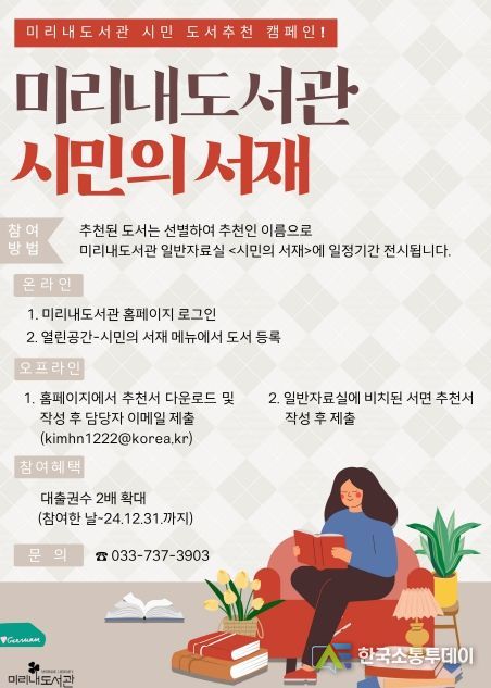 한국소통투데이 관리자 기자 | 미리내도서관(관장 백연순)은 시민의 목소리를 담은 도서 추천 공간 ‘시민의 서재’를 연중 운영한다.