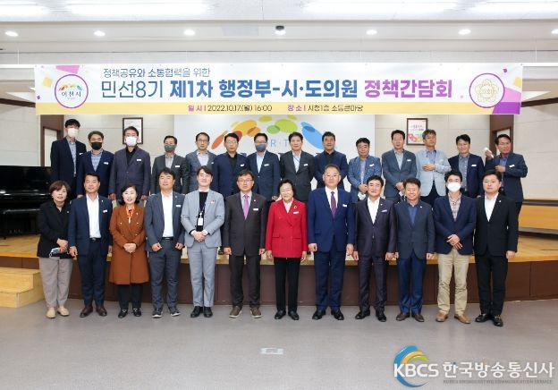 시와 의회는 지난 17일, 시청1층 소통큰마당에서 김경희 이천시장, 김하식 이천시의회 의장을 비롯한 시의원, 김일중 도의원과 시 행정부 간부공무원 등 30여명이 참석한 가운데 민선8기 제1차 정책간담회를 개최했다.