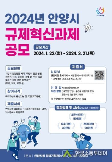 한국소통투데이 관리자 기자 | 안양시는 시민이 직접 참여하고 체감하는 규제혁신을 추진하기 위해 ‘안양시 규제혁신 공모전’을 개최한다고 5일 밝혔다.