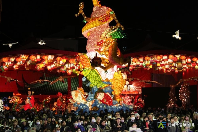 (도쿄=신화통신) 14일 일본 '나가사키 랜턴 페스티벌' 등불 축제를 관람하는 관광객들.나가사키 랜턴 페스티벌이 지난 9일부터 오는 25일까지 열린다. 나가사키 시내에는 약 1만5천 개의 등롱이 설치돼 많은 관광객의 발길이 이어지고 있다. 2024.2.14