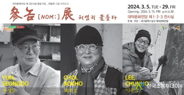 한국소통투데이 관리자 기자 | 대구광역시 남구 대덕문화전당이 제3전시실 완공기념 ‘전람회의 그림 시리즈’ 두 번째 전시'參 NOM 展(삼놈전)_처염히 물들다'를 오는 3월 5일부터 29일까지 대덕문화전당 제1, 2, 3전시실에서 개최한다.