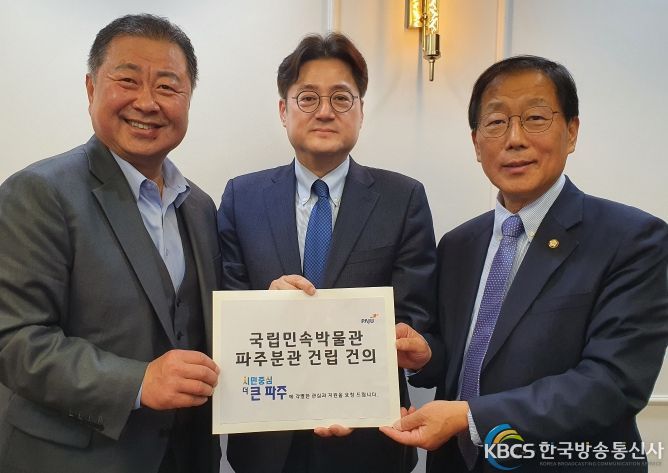 파주시는 27일 김경일 파주시장이 국립민속박물관 파주분관 유치를 위해 국회에서 홍익표 문화체육관광위원회 위원장과 윤후덕 지역 국회의원을 만나 현재 국립민속박물관 파주 유휴부지를 확장하여 파주분관으로 건립되도록 내년 예산에 반영해 줄 것을 요청했다고 밝혔다.