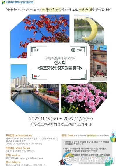 한국방송통신사 관리자 기자 | (재)김포시청소년재단 사우청소년문화의집에서는 사진동아리 ‘카피라이트’가 사진출사 결과물을 바탕으로 ‘사진 전시회’를 운영한다.
