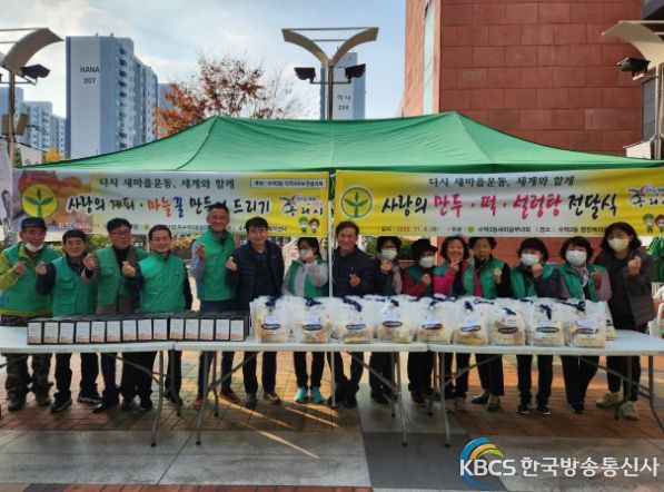 한국방송통신사 관리자 기자 | 구리시 수택3동 행정복지센터(동장 이영희)는 지난 8일 수택3동 새마을지도자협의회(회장 김용겸)와 새마을부녀회(회장 최영숙) 주관으로‘사랑의 마늘꿀 및 만두 등 전달식’행사를 가졌다.