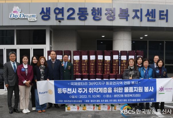 한국방송통신사 관리자 기자 | 동두천송지로타리클럽(회장 나경희)은 지난 10일 주거환경이 열악한 취약계층 가구와 독거노인 가구를 위해 600만원 상당의 전기장판 및 건강음료를 후원했다고 전했다.