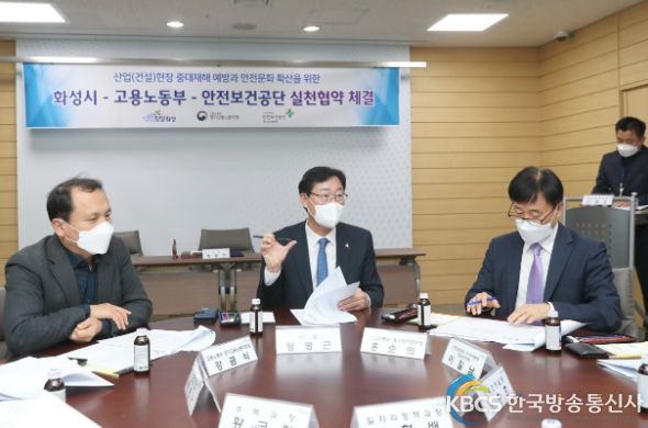 한국방송통신사 관리자 기자 | 화성시는 22일 고용노동부, 안전보건공단과 함께 경기도 내에서 최초로 ‘건설현장 안전사고 감축과 안전문화 확산을 위한 실천협약’을 체결했다고 밝혔다.