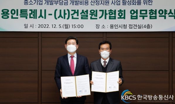 한국방송통신사 관리자 기자 | 용인특례시는 5일 시장 접견실에서 (사)건설원가협회와 중소기업 개발부담금 산정지원 업무협약을 체결했다고 밝혔다.