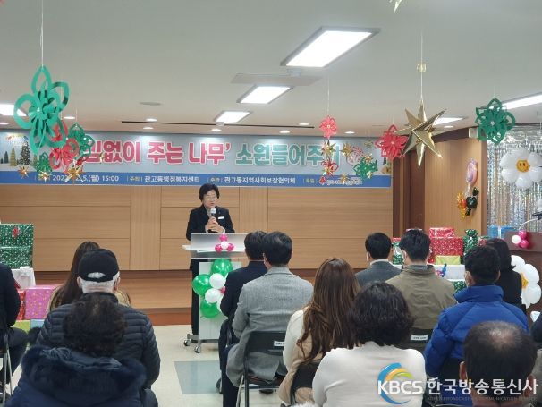 한국방송통신사 관리자 기자 | 관고동지역사회보장협의체(공동위원장 한미연, 김종원)에서는 12월 5일 관고동행정복지센터에서 지역사회의 저소득 아동ㆍ청소년들에게 소원하는 물품을 지원하여 소망과 희망을 심어주는 2022년'아낌없이 주는 나무'“소원 들어주기”행사의 발대식을 개최했다.